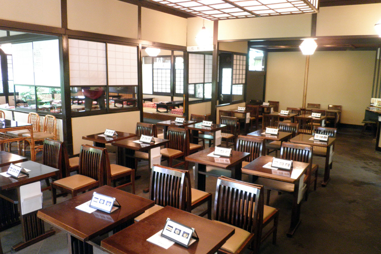 私共の初代・堀田七兵衛がその藪蕎麦の神田連雀町支店を譲り受けて営業を始めたのが明治13年。 初代はそれ以前、四代目大阪屋を名乗り蔵前で砂場を経営していました。 墓にも砂場と同じ家紋が彫り込んであります。 四代目ですのでざっと見積もっても、その時点で砂場として約百年の歴史があったと考えられます。 しかし、初代が砂場から藪に乗り換えた理由というのが今となってはわからない。 我々にとってもミステリーです。 僕が考えるには店の造りが関連しているのではないか。 明治維新から13年。 時代が落ち着いてきて、普通の町人衆、職人衆が腹ふさぎに入るような店ではなく、団子坂 「蔦屋」 のような店にしたかったのだと思います。 時代の変化に合わせた路線変更ですね。 当時の店は関東大震災で倒れて残っていないのですが、畳の間に椅子とテーブルを置いて洋風の対応をしたモダンな店だった。 「蔦屋」 と同じように、非日常の空間でゆっくりと蕎麦を楽しむことができる人たちを対象にした、贅沢な店を目指したのではないでしょうか。