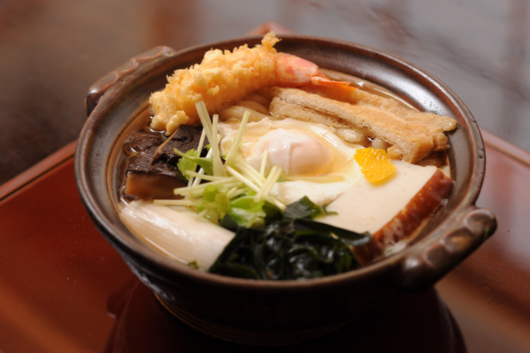 当初はつなぎ2割の二八そばを打っていました。 ところが、自家製粉になったことや、技術が向上したこともあって、3年前からすべて十割に切り替えました。 それまで手打ちや自家製粉に反対してきた親父ですが、最近は雑誌などに 「自家製粉、十割そばの店」 として紹介されると嬉しそうに常連さんに見せていますよ(笑)。 そばを手打ちに切り替えたのを機に、うどんをメニューから外しました。 製麺機自体、廃棄してしまったので。 ただ、不思議なもので、十割でそばを打ち始めた頃から、うどんもやってもいいかな、と思うようになった。 気持ちに余裕が出たのかもしれません。 もちろん、出すからには、そばと同じレベルの、こだわりのあるものでなくてはならない。 そこで、うどんも手打ちにして、冬期限定で鍋焼きうどんを復活させたところ、お客さまに大好評。 これは続けて行きたいですね。