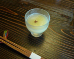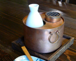 まずは蕎麦前を。 この店の夏の愉しみといえば濁り酒である。 濁り酒は冬のものだが、夏に美味しい濁り酒が入手できると出していたため名物のようになっていた。 ぬる燗で飲む夏の濁り酒は例えようもなく美味しい記憶だったが、残念ながら夏の終わりに濁り酒はなかった。 代わりに十周年記念の振る舞い酒「鯉川」の大吟醸を冷やで。冴え渡る大吟醸ではなく、包みこむような柔らかな味わい。 こういう日にはこういう日本酒が心と身体に染み入る。 次は同じく「鯉川」の純米吟醸「亀治好日」。女将さんが楽しそうに用意してくれたのは一人用の燗銅壺だ。 炭火を忍ばせて湯煎する。これはいい。 愉しみがまた一つ増えた。この店では店主の好みでお燗に向いた日本酒を揃えている。 「鯉川」などはまさに燗酒向きの酒。 純米お燗派の一人となった現在、この酒の選び方、飲み方は何よりも好ましい。