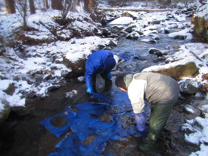 寒中浸し作業は毎年、喜多方市山都町の一ノ戸川で行われていたが、今年は放射線の不安解消を目的に、山都そばの発祥とされるアッタ坂の清水で開催した。実行委は、アッタ坂の清水の水質検査を実施、放射線は検出されなかった。