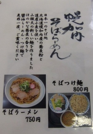 【らーめん山頭火『幌加内そばらーめん』メニュー】