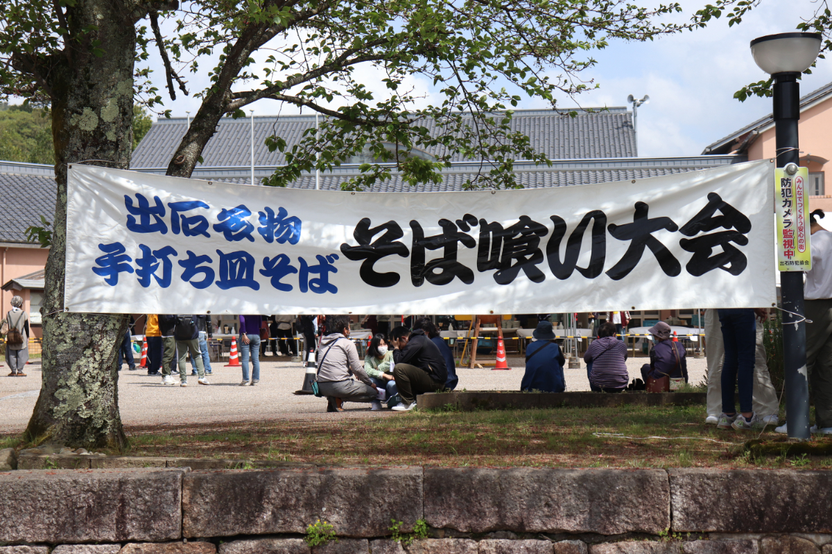 昨年は東日本大震災を受けて開催を見合わせた「出石そば喰い大会」が2012年4月15日、2年ぶりに桜満開のもと、豊岡市出石町の出石総合支所前広場で行われた。