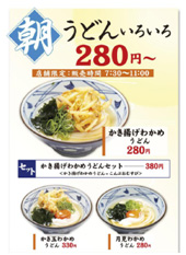 朝限定の「朝うどん」(280円~)の販売を順次開始する。