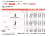 2012年10月の外食産業売上げ 前年比マイナス2.1%