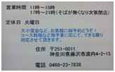 ※尚お電話のお問い合わせの時間はお店の忙しくない時間帯(3時~5時)にお願いします。