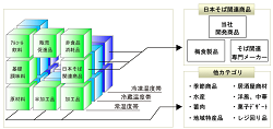 都区内都下・埼玉・神奈川・群馬・茨城・栃木・千葉を中心とする関東地方全域をカバーする物流拠点を有し、お蕎麦屋さん・おうどん屋さんをはじめとした日本食店7000件近いのお客様にお取引いただいております。