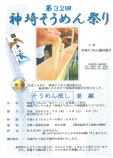 同お祭りは神埼そうめん協同組合によるもので、380年の伝統を誇る神埼特産の「神埼そうめん」の美味しさを広く知っていただこうと、毎年5月のゴールデンウィークに、開かれる。今回で32回目となる。神埼そうめんは2006年10月27日に地域ブランド(地域団体商標)として認定されている。 料金は300円(小学生以上)。