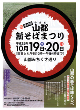 2013年10月19日20日の2日間、第30回「山都新そばまつり」が山都みちくさ通りで開かれる。山都町のそば店7店のほか県外2店が主店し、新そばの食べ比べができる。 チケット制で1杯500円から。チケットは当日、会場で販売される。