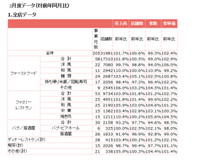 対象事業者数24社(店舗数2687店)が登録するファーストフードの麺類部門は2ヶ月ぶりに増加した。