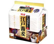 今回の新商品『明星 江戸蕎麦 更科布屋監修 5食パック』は、江戸時代から続くそばの名店の監修のもと、まっすぐで、のどごしの良い「江戸蕎麦」の粋な味わいを、明星食品独自のノンフライ製法で再現しました。噛むほどにそば粉の風味が口に広がる、歯切れの良いそばに、鰹のだしとしっかりした味のかえしを絶妙なバランスでブレンドした、関東風のそばつゆを合わせました。丸大豆醤油を使用した、まろやかな旨みをもったそばつゆは、「ざる」でも、「かけ」でもお手軽に楽しめます。」とのこと。