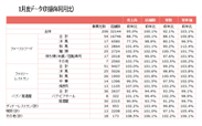 1月の外食需要は、客単価が21カ月連続して前年を上回るものの、客数は伸びていない。中でもFF洋風は、食品への異物混入事件の影響で客数が大きくマイナスとなり売上減となったことから、外食全体の売上も95.0%と、前月に続き前年を下回った。マイナス5.0%の落ち込み幅は東日本大震災が発生した11年3月の10.3%マイナスに次ぐ水準。