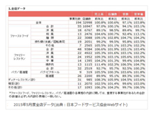 2015年5月の外食産業売上げ 0.8%プラス 麺類は好調9.1%プラス