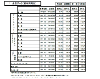 ・「パブ・ビアホール」は、一部店舗を除き昨年より客数は増えているものの、客単価の減少で売上は前年を下回った。「居酒屋」は引き続いての店舗削減で、客数と売上はマイナスとなった。